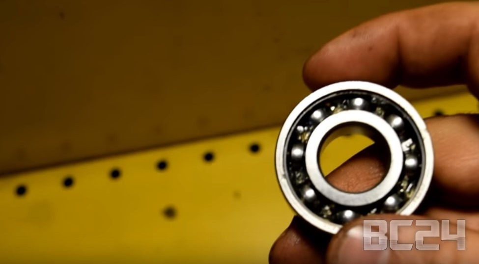 Для этого теста мы взяли 7 одинаковых подшипников, закрепили их на одну ось, подключим к двигателю и будем вращать в специальной ванночке. Смазка, которую меньше всего смоет и будет победителем в этом испытании.